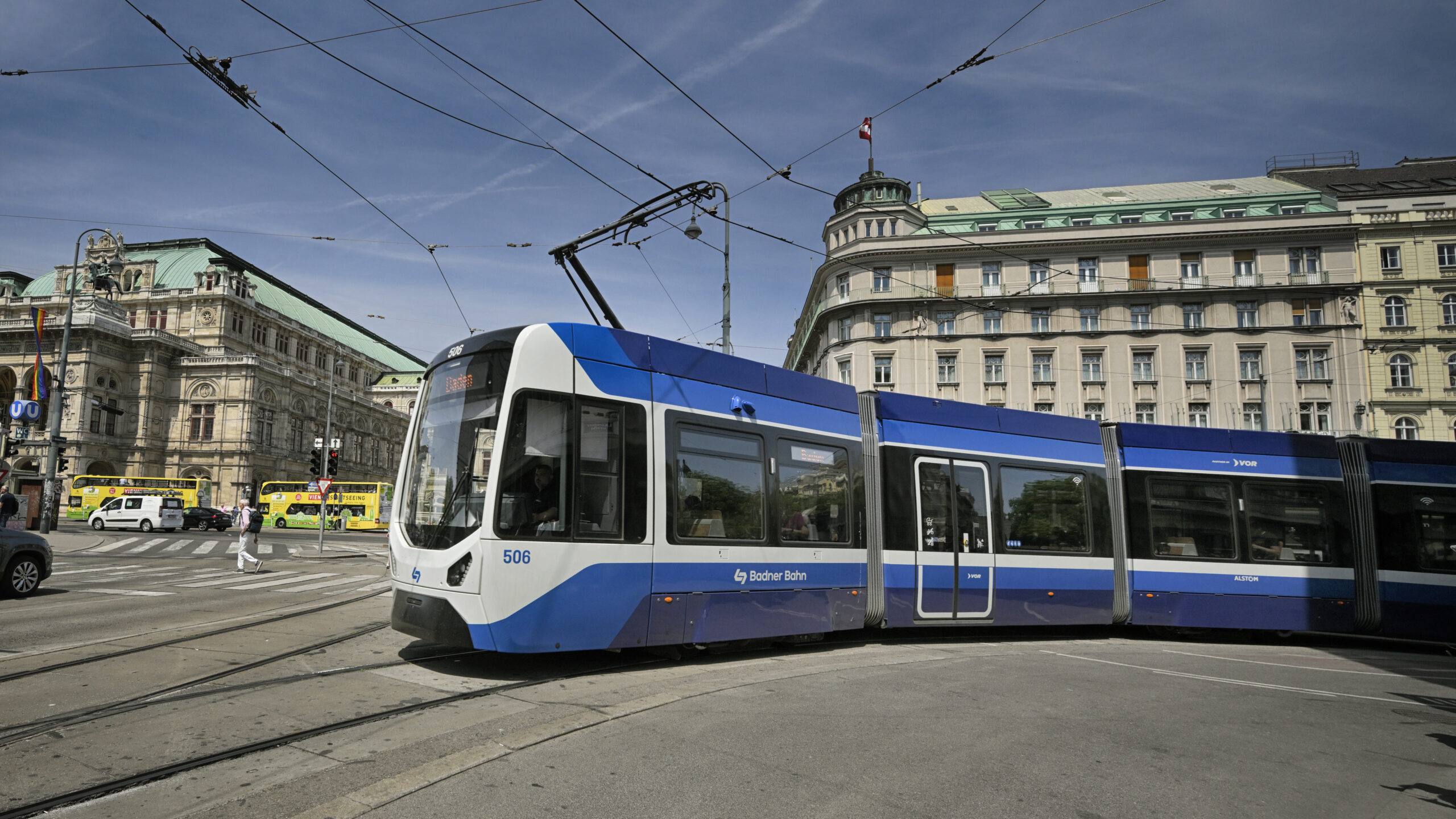 TW500 der Badner Bahn bei der Wiener Staatsoper