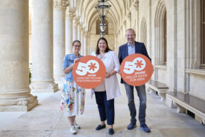 Vizebürgermeisterin Kathrin Gaál (Mitte), mit Petra Engelmann und Otto Eckl (beide Technische Stadterneuerung). ©Stadt Wien/Markus Wache