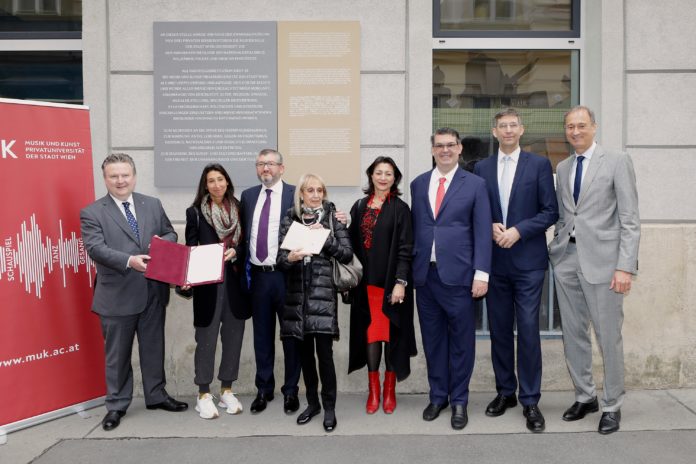 Das Wissen aus dem wertvollen Aufarbeitungsprozess soll auch durch eine mehrsprachige Gedenktafel an der Fassade der MUK in der Johannesgasse im Bewusstsein der hier und heute Studierenden und Lehrenden sowie der breiten Öffentlichkeit verankert werden. Bürgermeister Dr. Michael Ludwig enthüllte am 26. April die auch ins Englische, Koreanische, Russische und Japanische (die an der MUK meistgesprochenen Sprachen) übersetzte Erinnerung und Verpflichtung:
