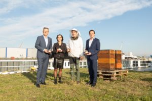 v.l.n.r.-Friedrich-Lehr-Doris-Pulker-Rohrhofer-GFs-Hafen-Wien-Stadtimker-Felix-Munk-Kurt-Gollowitzer-GF-Wien-Holding-c-Barbara-Nidetzky