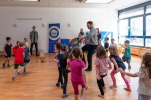 Felix Neureuther fördert spielerisch die motorische und kognitive Entwicklung der Kinder. ©Michaela Pranter/Viennashots