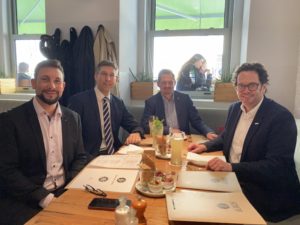 (C) ZVG: (v.l.n.r.) BV Markus Rumelhart (Mariahilf), BV Markus Figl (Innere Stadt), (BV) Marcus Franz (Favoriten) und BV Markus Reiter (Neubau) beim Gipfeltreffen.