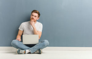 Young,Redhead,Student,Man,Sitting,On,The,Floor,Doubting,And