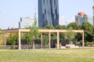 Schattige Holzpergolen für heiße Sommertage auf der Donauinsel