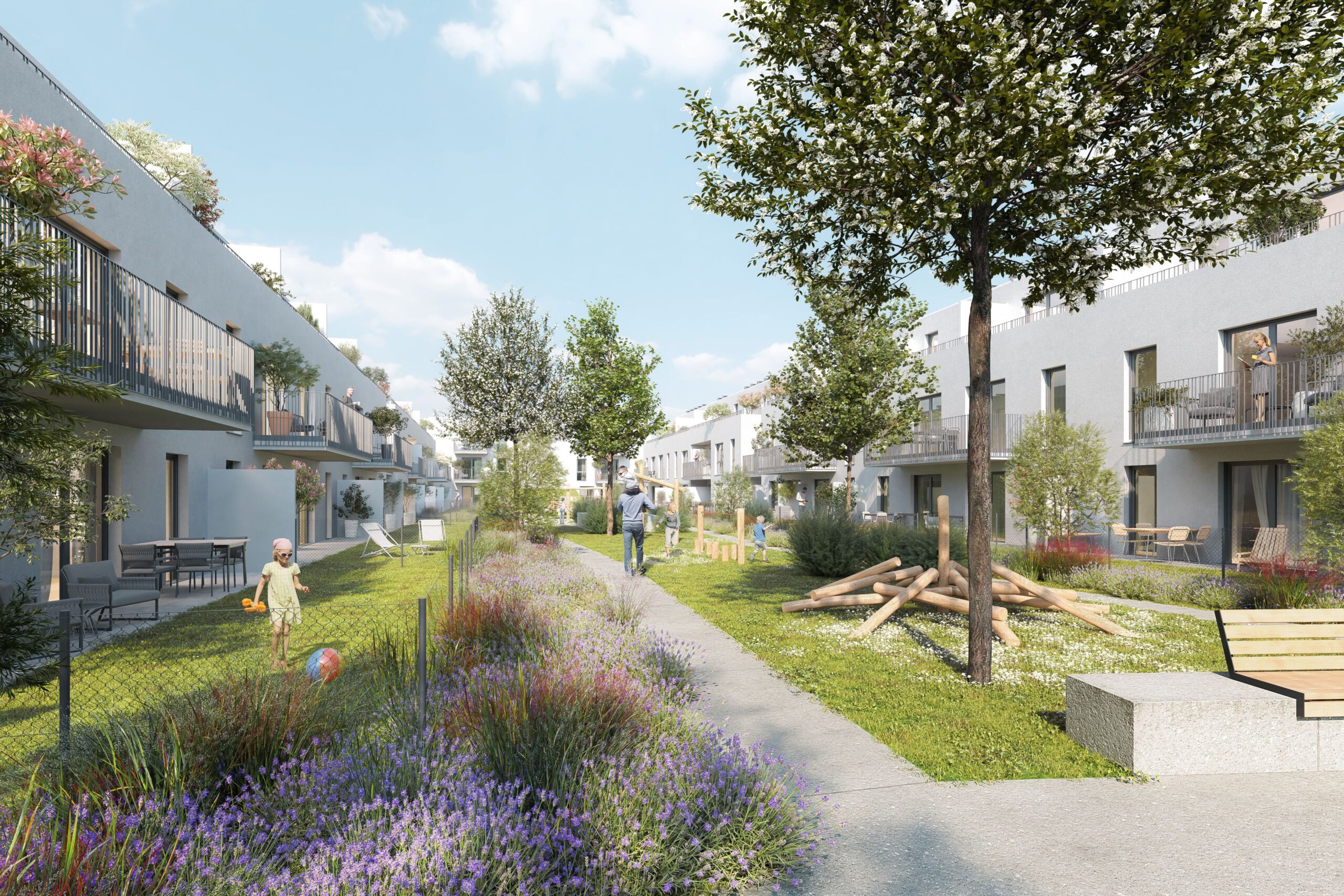 98 Wohnungen mit Gartenflair sollen ab dem Frühsommer 2026 zur Verfügung stehen, die leistbares Wohnen mit hohen ökologischen Standards verbinden.