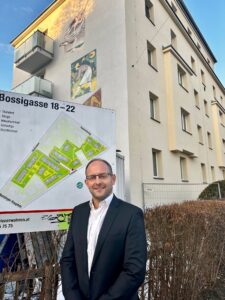 Auf Initiative von Bezirks-Vize Marcel Höckner wird der Gemeindebau auf "Die vier Jahreszeiten" getauft © SPÖ Hietzing