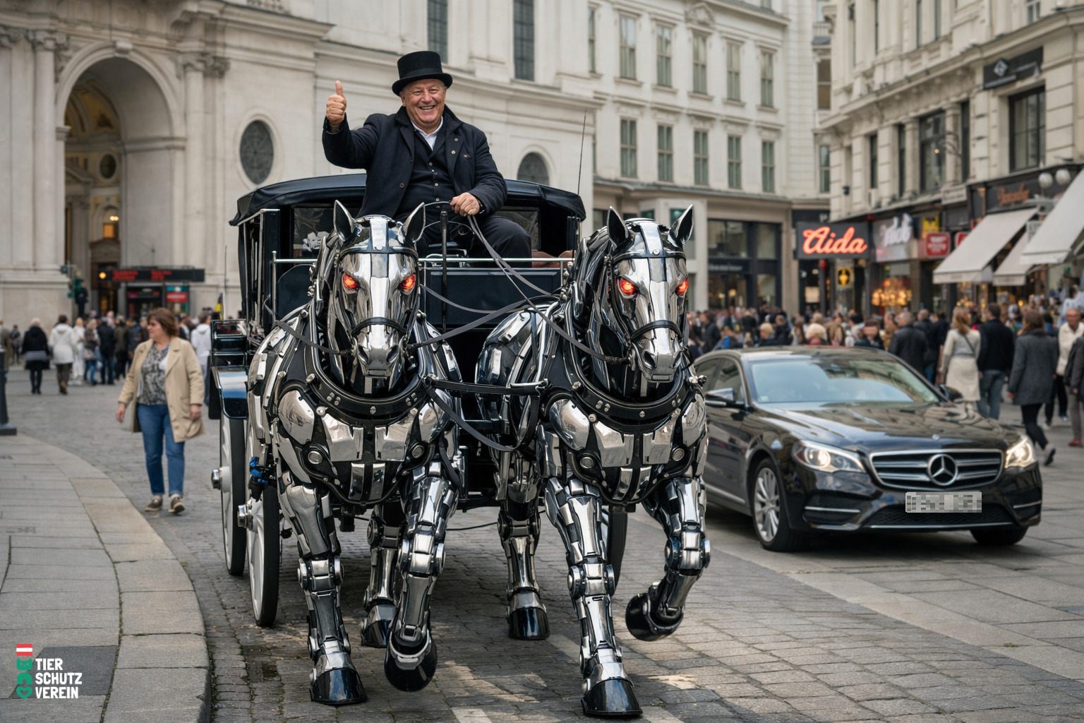 Der Österreichische Tierschutzverein zeigt sich begeistert und spricht vom „straßentauglichsten Fiakerpferd aller Zeiten“ – inklusive § 57a-Pickerl. Ein Detail, das verdeutlicht: Hier wird bewusst mit den Grenzen zwischen Tradition und Technik gespielt.