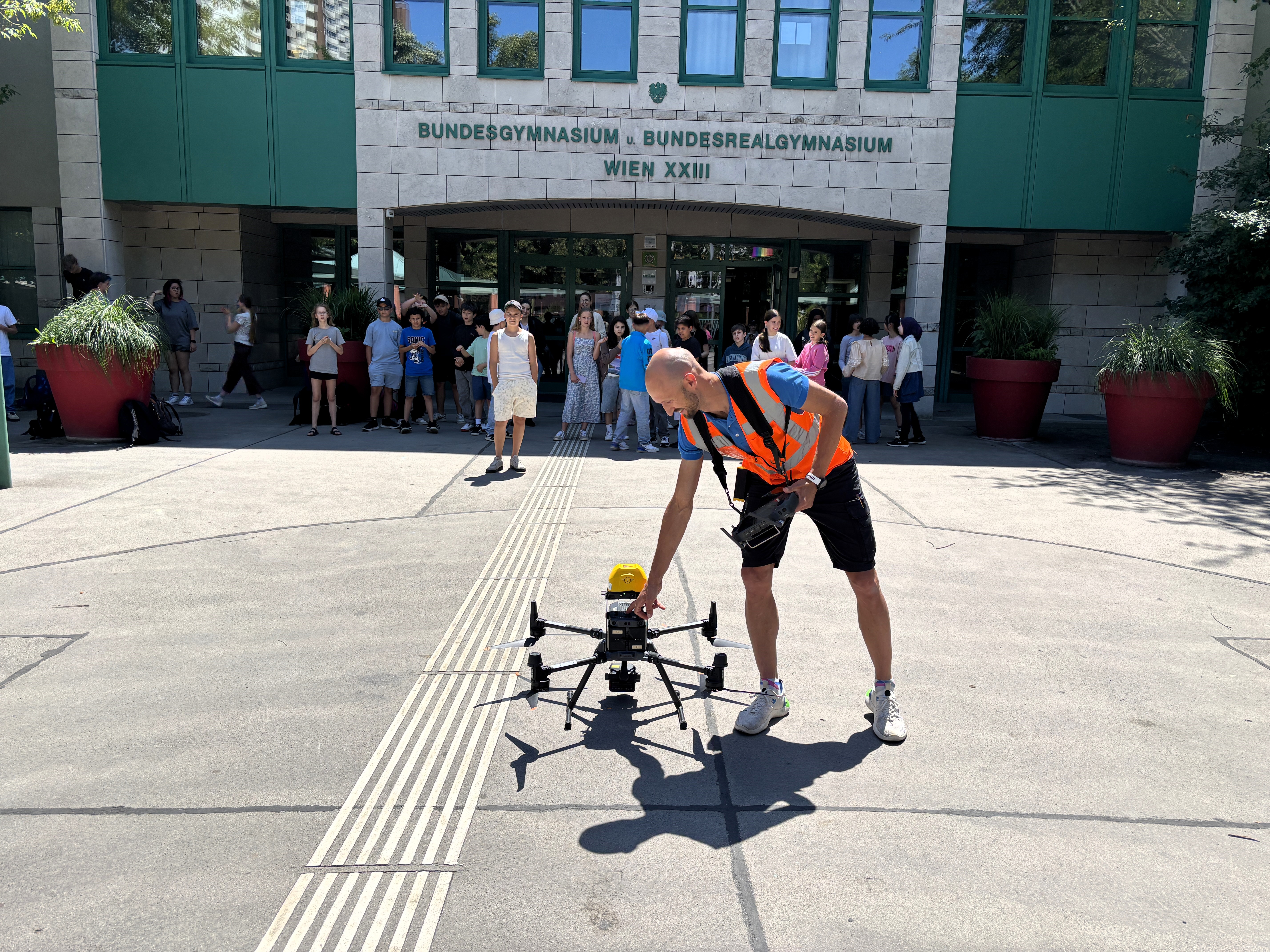 Kurz vor Schulschluss wurde das GRG23 in der Anton-Baumgartner-Straße zum Schauplatz für Hightech-Klimaforschung: Gemeinsam mit Wissenschaftlern untersuchen Schüler, wie gut ihre Schule auf steigende Temperaturen vorbereitet ist – unterstützt von modernster Drohnentechnologie.