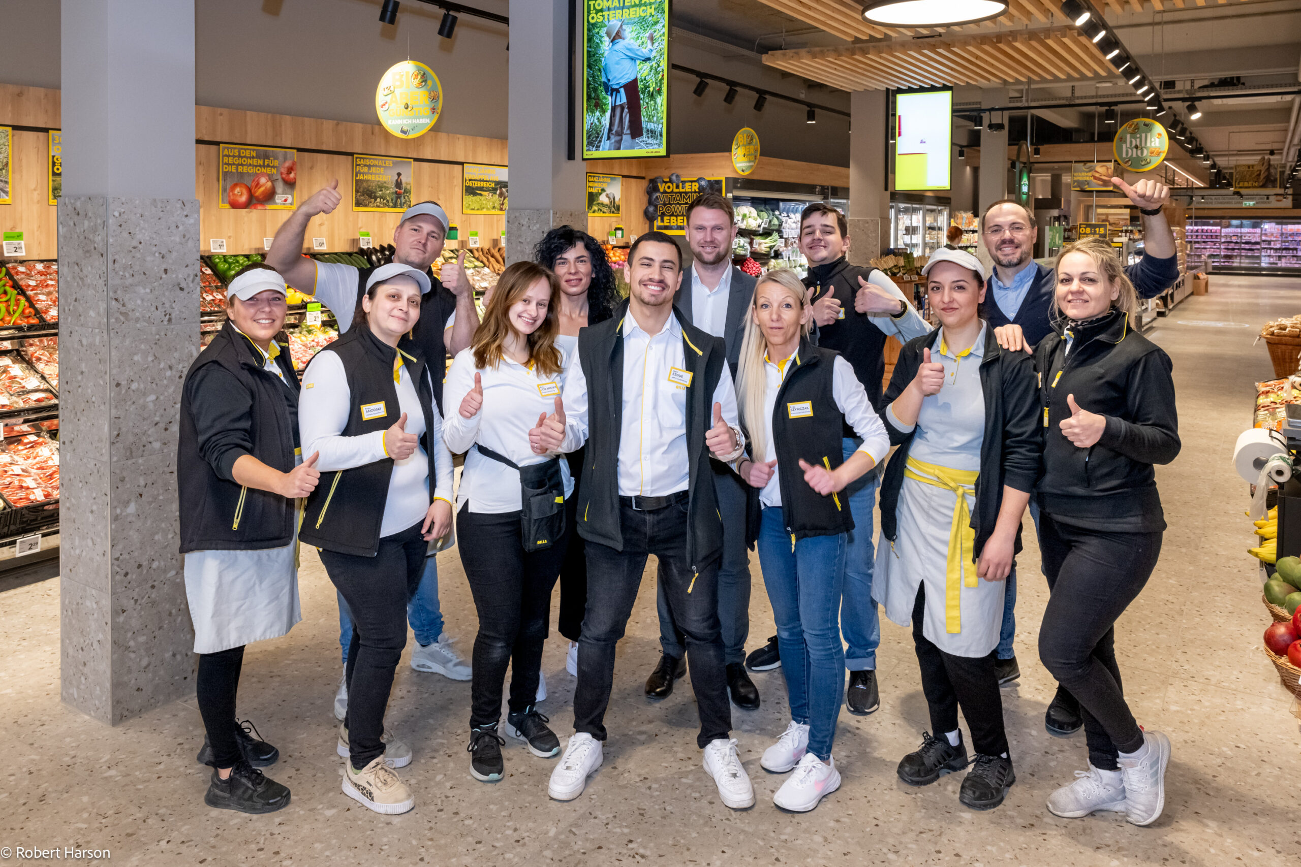 Die motivierten Mitarbeiter freuen sich auf zahlreiche Kunden © BILLA AG / Robert Harson