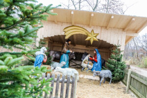 Maria und Josef in der Krippe im Lainzer Tiergarten erstrahlen in neuem Glanz.