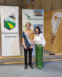 Emil mit seiner Betreuerin, Sabine Rauch, Jugendreferentin des Landesverbandes für Bienenzucht in Wien. © Landesverband für Bienenzucht in Wien