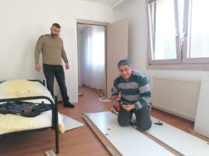 (C) KWP: Zur Vorbereitung wurden in den letzten Tagen Möbel, Hygieneartikel und Wäsche angeliefert. Mitarbeiter der KWP-Flüchtlingshilfe und der Beschaffungsabteilung, Ehrenamtliche sowie die Teams der PensionistInnenklubs für die Stadt Wien und anderer Hilfsorganisationen halfen mit viel Herzblut und Engagement die leeren Wohnungen zu möblieren.