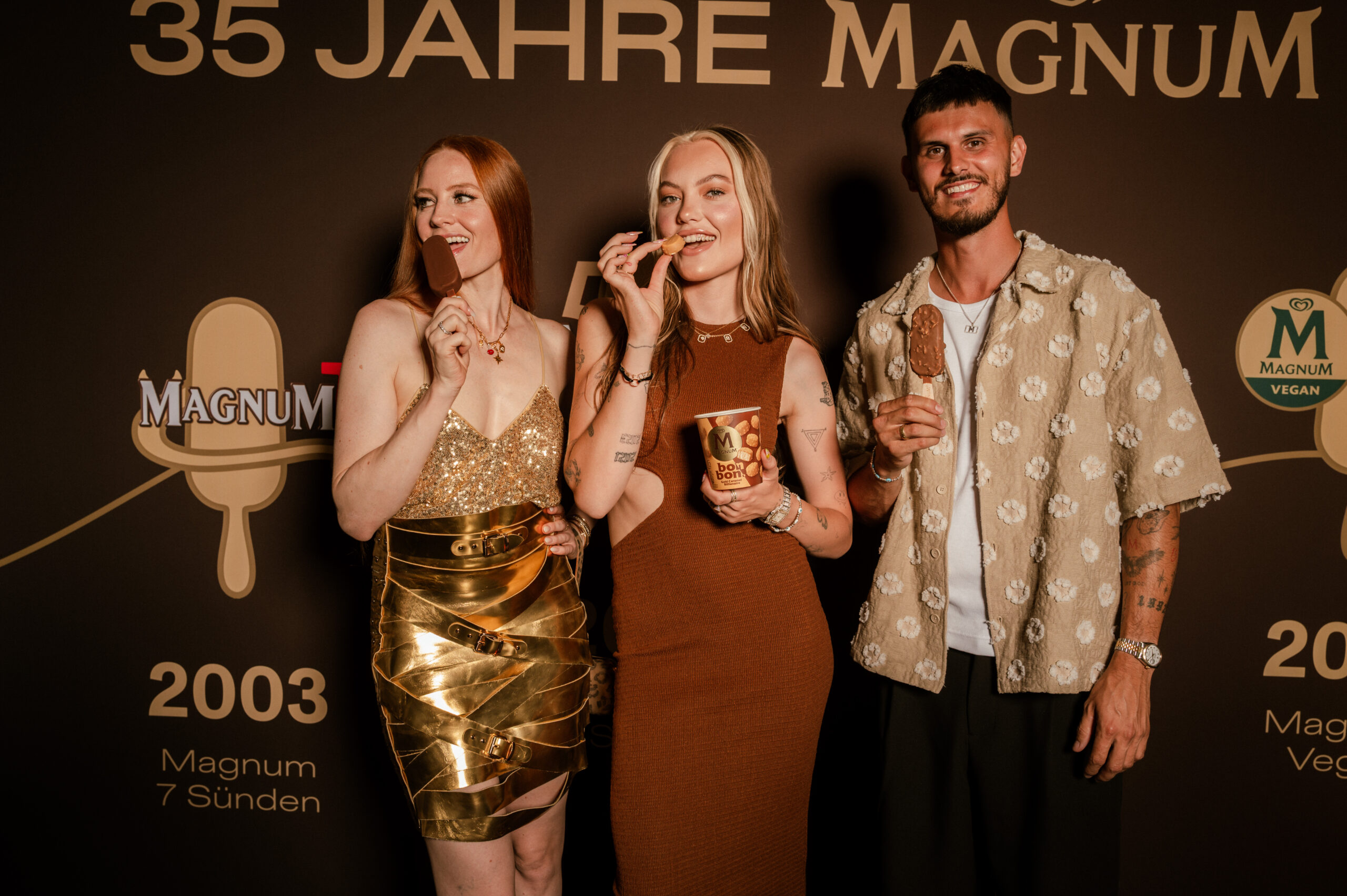Zu den Genussbotschafter*innen des Abends zählten unter anderem Model Barbara Meier, Cheyenne Ochsenknecht samt Ehemann Nino Sifkovits sowie Schauspieler Bless Amada und Musikerin Rose May Alaba. Cheyenne zeigte sich begeistert: „35 Jahre Magnum und wir feiern das mit Eis? Was will man mehr!“ Auch Ehemann Nino lobte die Rezeptideen, während Barbara Meier die neuen Bonbons als perfekten Sommer-Snack pries.