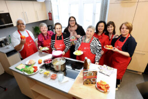 Vizebürgermeisterin und Wohnbaustadträtin Kathrin Gaál besuchte die Kochgruppe im Grätzlzentrum Engerthstraße, um ihren Beitrag für das neue Gemeindebau-Kochbuch zu probieren. © Stadt Wien/Martin Votava