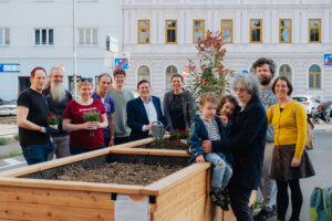 BV Wilfried Zankl (Mitte) weihte die Hochbeete mit der GB* und Anrainern feierlich ein © Daniel Dutkowski