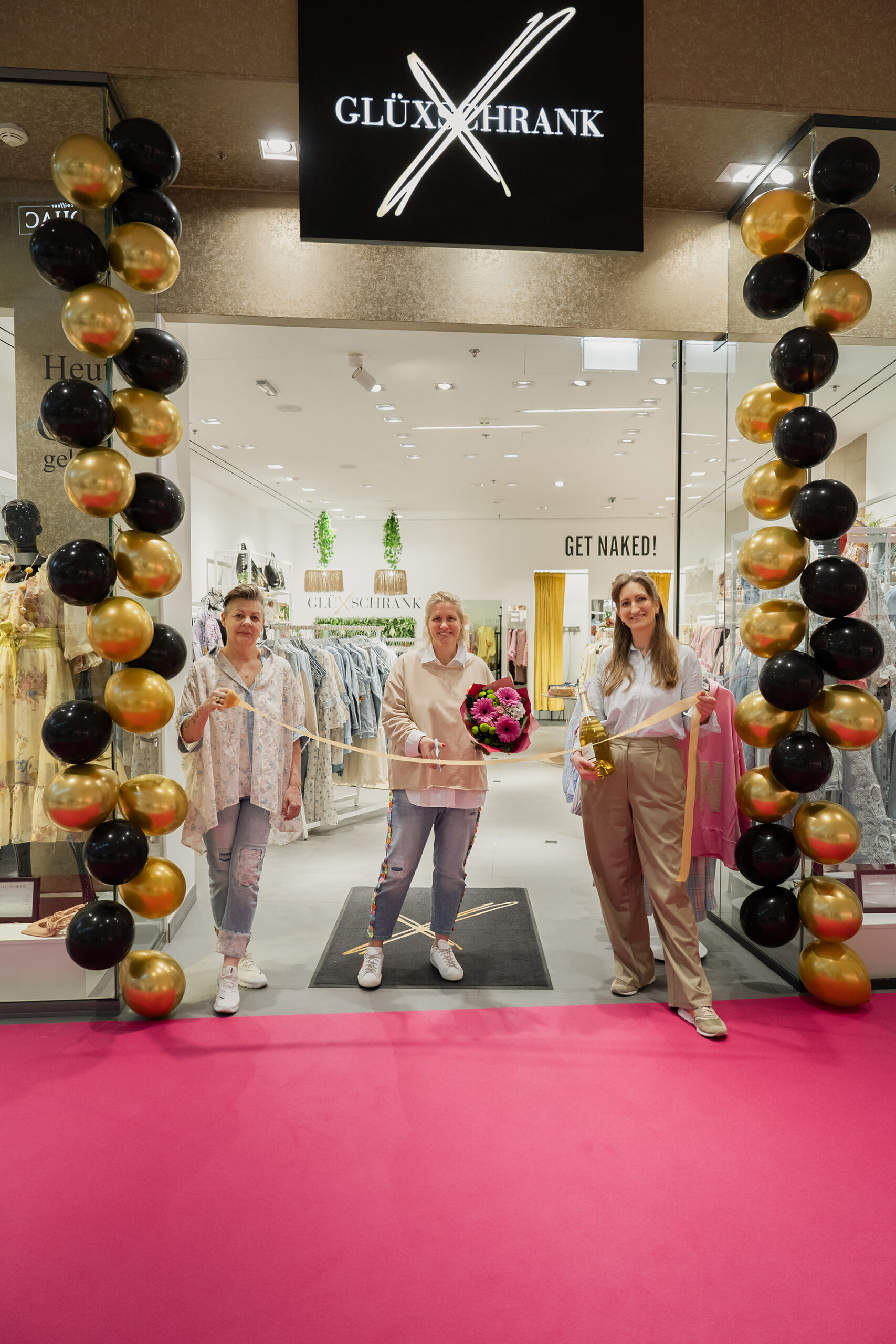 Hereinspaziert in einen noch schönere GlüXschrank-Boutique: Andrea Wagner, Inhaberin Katharina Krammer (beode GlüXschrank) mit Center Managerin Sabine Dreschkay. © Huma Eleven