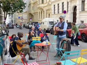 Salah Addin und Dominik Nostiz begeisterten 2021 auf der Wohnstraße Josefsgasse (1080 Wien) mit ihrer öffentlichen city|tact-Probe. | ©space and place