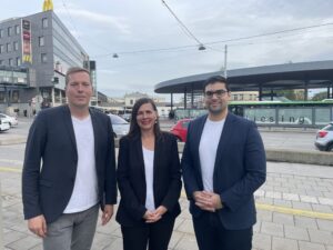 st. BV Patrick Gasselich, Bezirksrätin Suha Dejmek und Sicherheitsprecher Georg Akgül (v.l.) © ÖVP Liesing