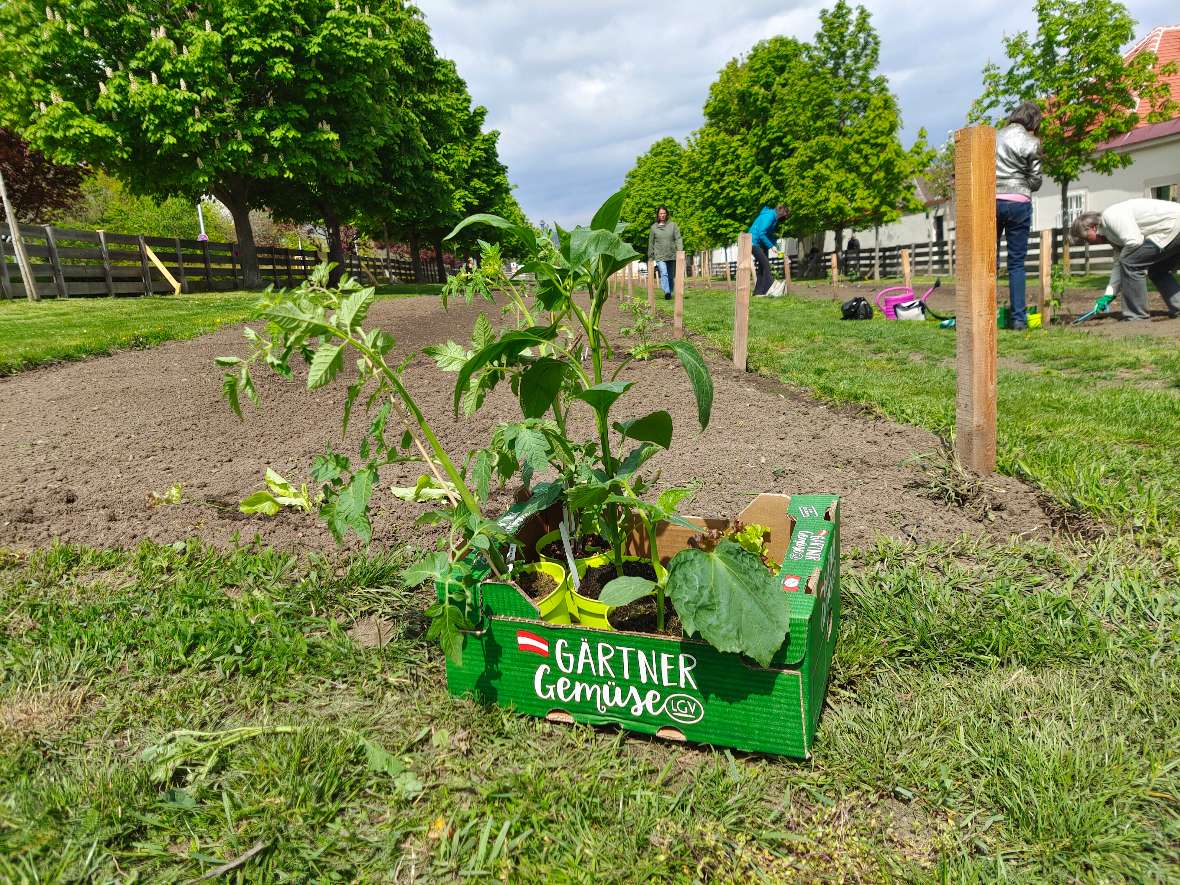 Vor dem Augarten haben sich die grünen Freiflächen in ertragreiche kleine Stadtgärten verwandelt. © ÖBG/Julian Sparrer