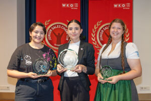 Vanessa Ecker (2. Platz, OÖ; Ausbildungsbetrieb: Thalia), Siegerin Sarah Wastl (A1 Telekom Austria, Wien), Anna Tritscher (3. Platz, Steiermark; Sport Tritscher)© Susi Berger / Camera Suspicta