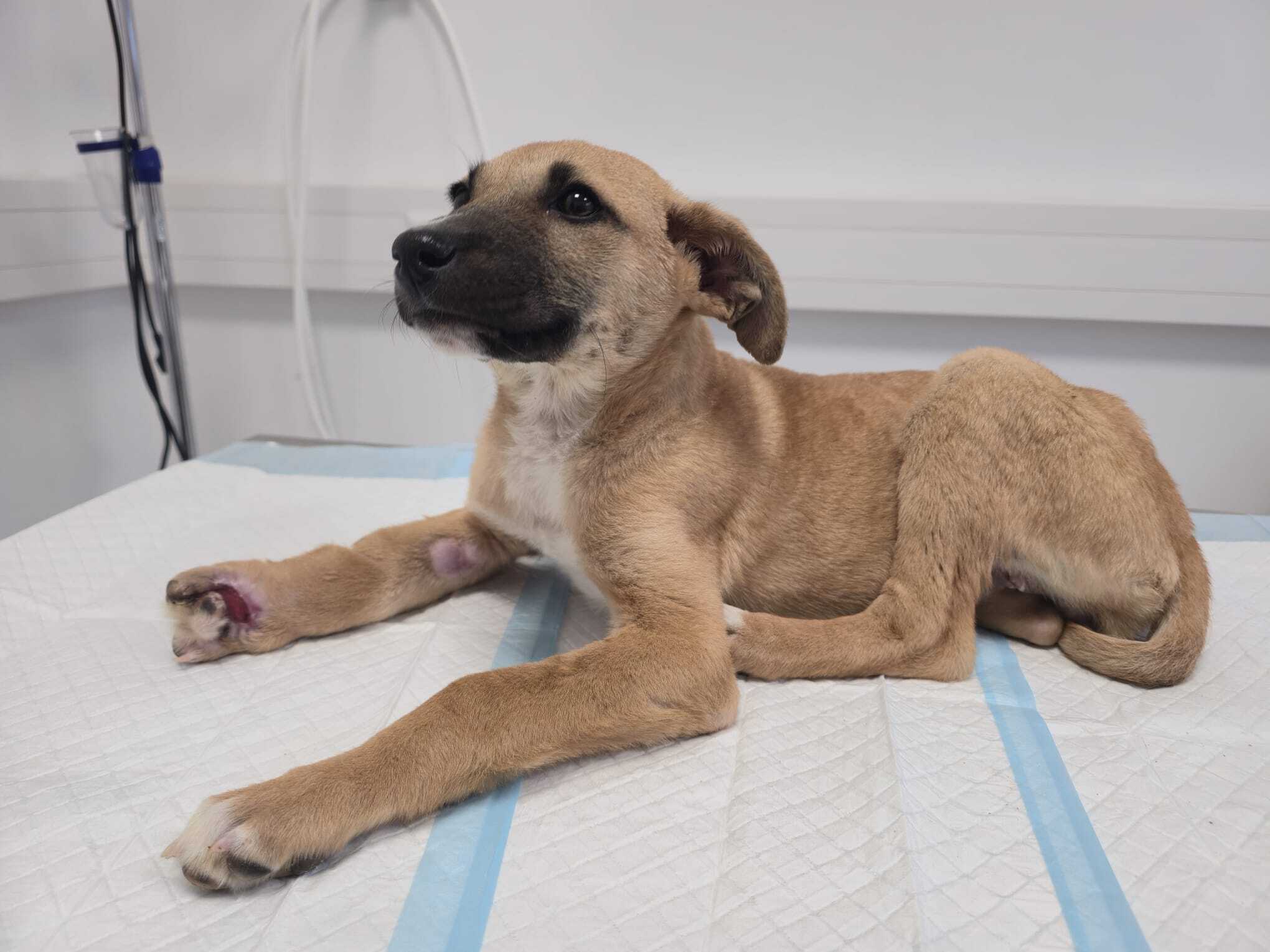 Neben einer alten, unbehandelten Fraktur wurde auch eine schwere Strangulationsverletzung diagnostiziert. Laut aktuellem medizinischem Stand besteht der begründete Verdacht, dass ein Vorderbein über längere Zeit mit einem Seil oder einem ähnlichen Gegenstand abgeschnürt wurde. Die dadurch verursachte Durchblutungsstörung führte zu schweren Gewebeschäden, Entzündungen und starken Schmerzen.