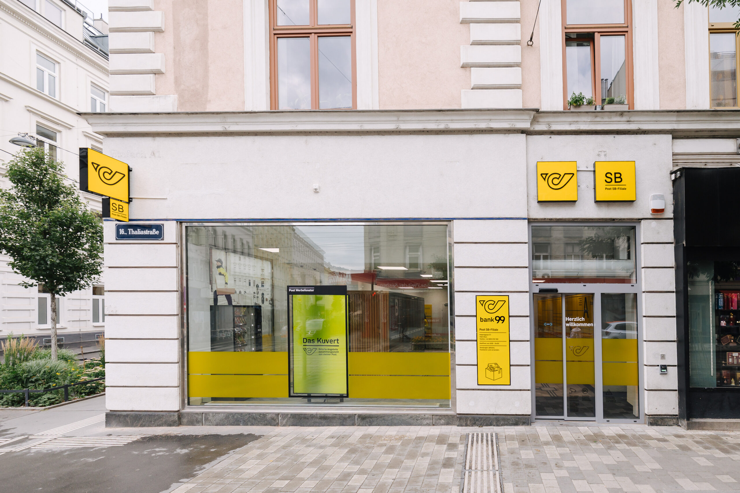 - Die neue 24/7-SB-Filiale der Post in der Haberlgasse 51 (Bild: Post AG).