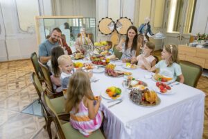 Kleine Besucher sind gefragt die kaiserliche Tafel festlich zu schmücken © SKB
