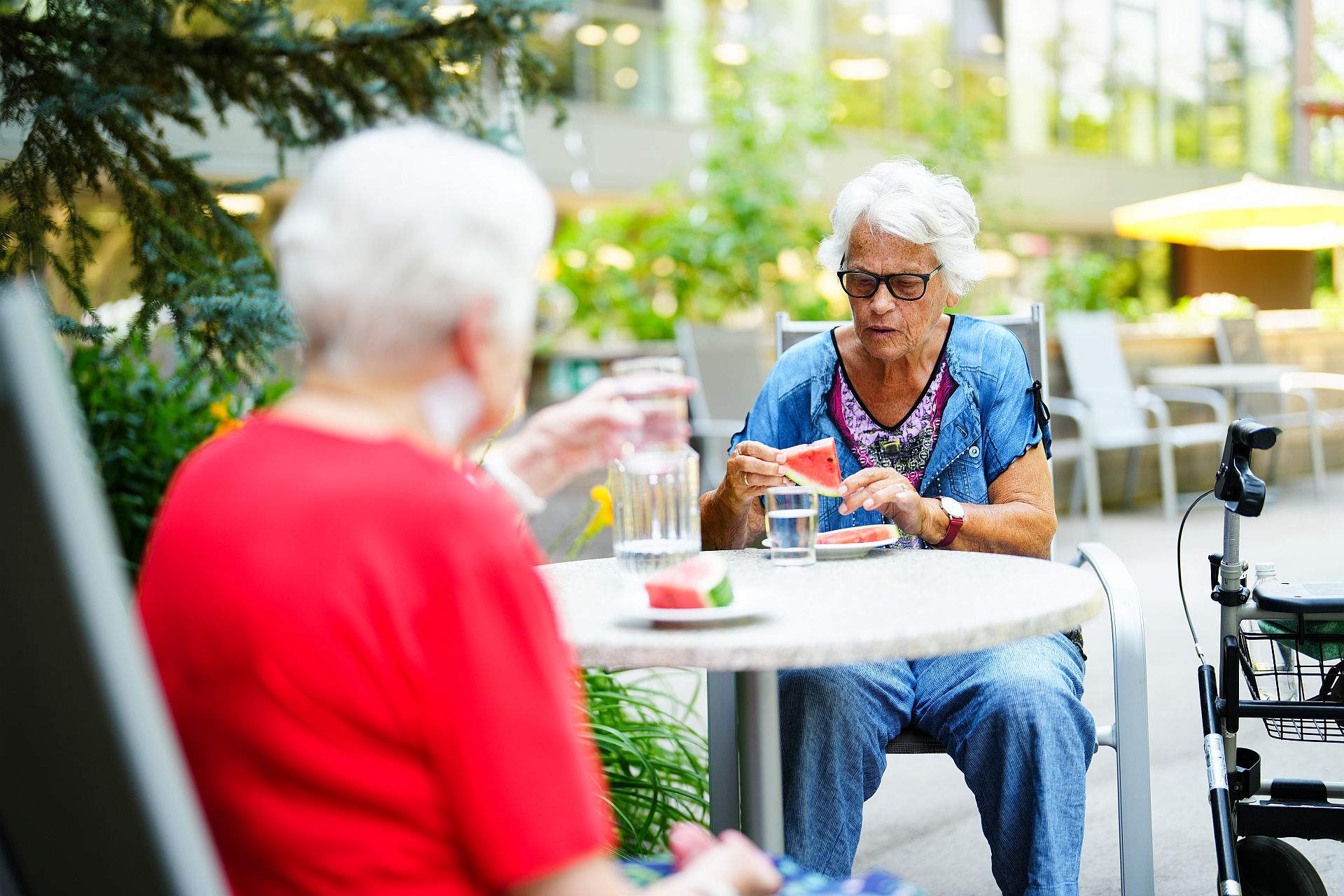 Seniorin mit Wassermelone