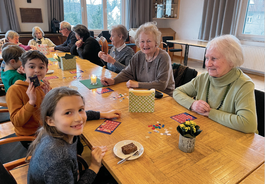 Hier schwingen junge und alte Herzen im Einklang. Kinder der Volksschule Mondweg plaudern und spielen regelmäßig mit Senioren der Pfarre St. Josef.