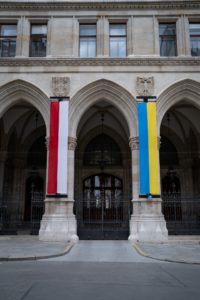 (C) PID/David Bohmann: Am Wiener Rathaus wurde die Flagge der Ukraine als Symbol der Solidarität gehisst.