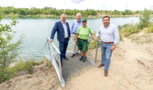 Franz Dinhobl, Klaus Schneeberger, Silvia Jäche und Florian Fux präsentieren die neue Stiege © Stadt Wiener Neustadt/Weller